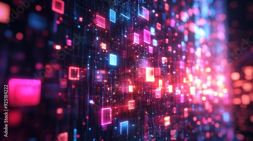 © farikhin, Obraz premium Abstract Digital Data Wall with Glowing Lights