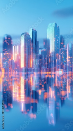 Fototapeta premium Abstract digital depiction of a modern cityscape reflecting in water