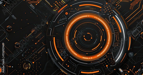 © BersyukurStock, Obraz premium Abstract digital design featuring a circular pattern with orange accents on a dark background.