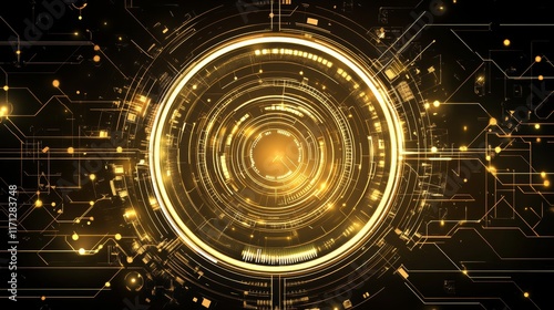 Obraz premium Abstract digital design featuring concentric circles and glowing elements for technology themes.