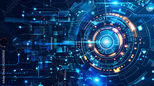 Obraz premium Abstract digital design featuring futuristic technology elements and glowing circuits.