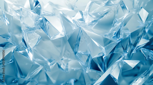 © @foxfotoco, Naklejka premium Abstract Digital Design with Crystalline Ice Shapes in Blue and White Hues