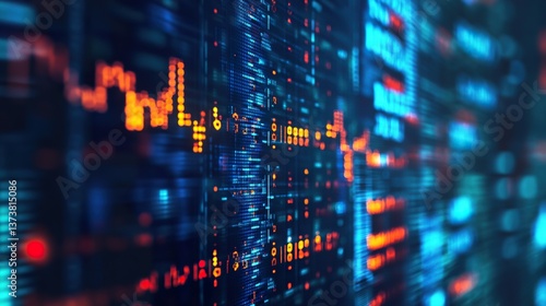 © ikiaku, Fototapeta premium Abstract digital display with stylized financial data and holographic elements