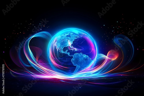 © BiBi, Obraz premium Abstract digital earth with light effect