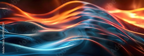 Naklejka premium Abstract Digital Energy Flow with Blue and Orange Glowing Waves