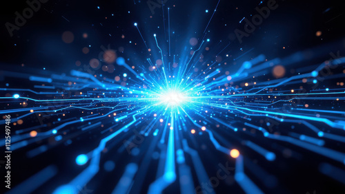 Fototapeta premium Abstract digital explosion with blue light bursts for a high-tech or...