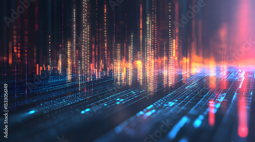 © Daniel, Obraz premium Abstract digital financial chart with illuminated data points and statistics.