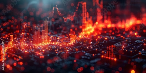 © Arnon Parnnao, Fototapeta premium Abstract digital financial data visualization with red glowing graphs and futuristic technology. Ideal for finance, tech, and data analytics usage.