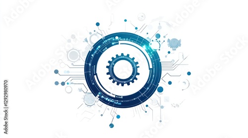 Fototapeta premium Abstract digital gear system design with interconnected circuit elements.