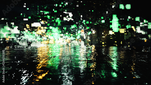© Nacci, Obraz premium Abstract Digital Glitch Art with Neon Colors
