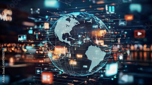© Lamduan, Obraz premium Abstract digital globe illustrating global connectivity.