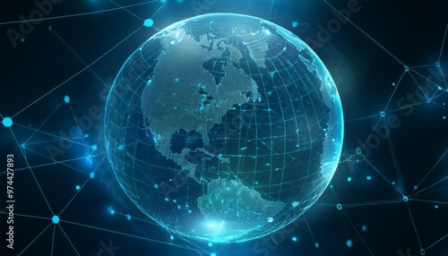 © RatihMeiriga, Fototapeta premium Abstract digital globe with global network connections
