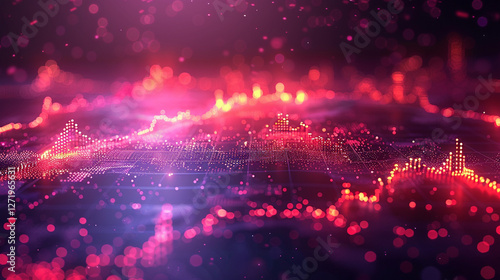 Obraz premium Abstract digital graphic design with glowing, vibrant data visualizations of...