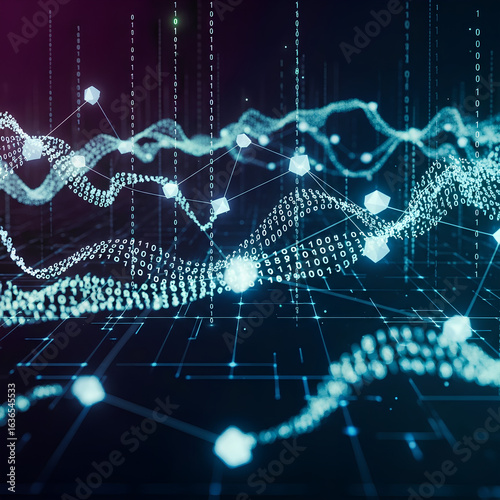 Obraz premium Abstract digital graphic of interconnected data points and lines, creating a...