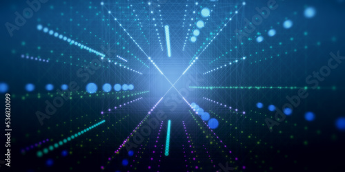 Fototapeta premium Abstract digital graphic wallpaper with disco style situated glowing dots and lines. 3D rendering