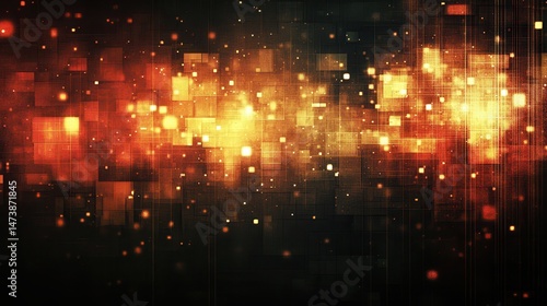Obraz premium Abstract digital graphic with glowing orange squares on dark background
