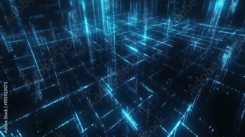 Obraz premium Abstract digital grid, glowing blue lines and data streams.