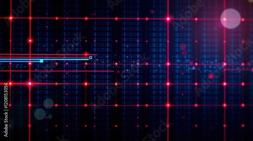 © De, Obraz premium Abstract Digital Grid: Red Lines, Binary Code, Glowing Aesthetic