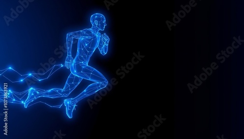 Fototapeta premium Abstract digital illustration of a runner with glowing lines, perfect for...