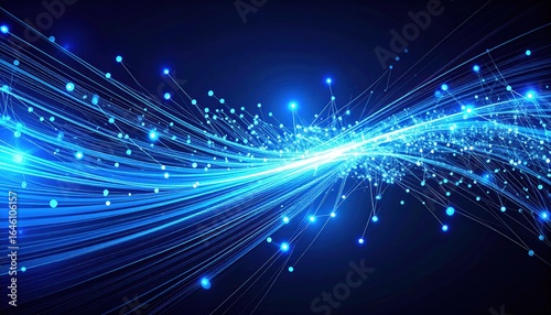 Obraz premium Abstract Digital Illustration Of Glowing Blue Light Trails Forming A Dynamic Wave Against A Dark Background