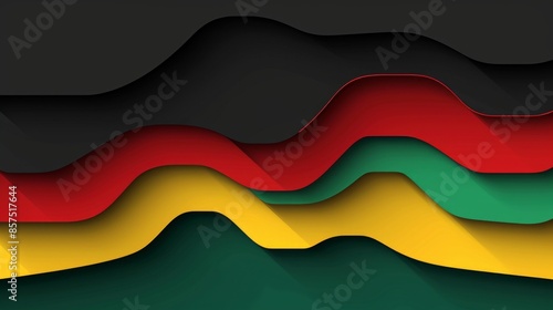 Fototapeta premium Abstract digital illustration of wavy paper in red, yellow, and black colors resembling the German flag.