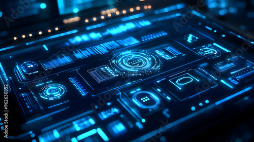 © KALEYA, Obraz premium Abstract Digital Interface Background with Blue Glowing Lines