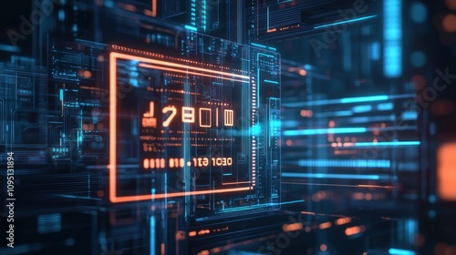 Obraz premium Abstract Digital Interface: Futuristic Technology and Data Streams