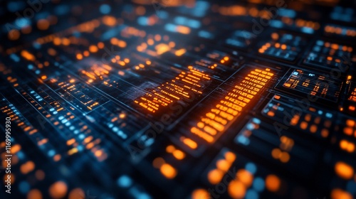 Obraz premium Abstract Digital Interface Glowing Orange And Blue Data Streams