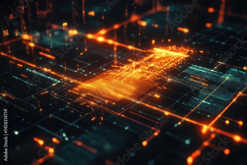 Obraz premium Abstract digital interface showcasing glowing lines and geometric shapes in a...