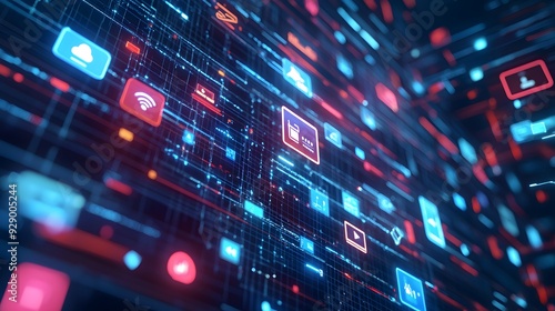 Obraz premium Abstract Digital Interface with Glowing Icons
