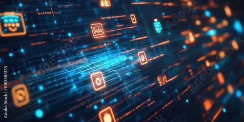Obraz premium Abstract digital interface with glowing icons and data streams