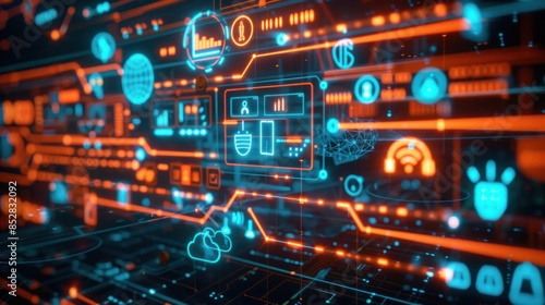 Obraz premium Abstract Digital Interface with Neon Lights