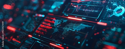 Obraz premium Abstract Digital Interface with World Map and Data Visualizations