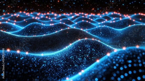 Fototapeta premium Abstract digital landscape of glowing, undulating waves
