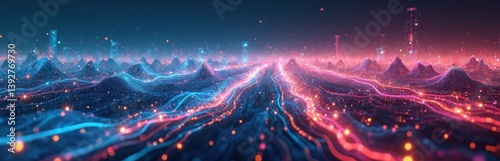 Obraz premium Abstract digital landscape vibrant colors, flowing lines representing...