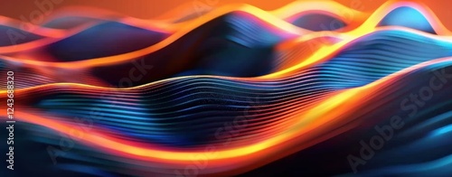 Naklejka premium Abstract Digital Landscape with Blue and Orange Gradient