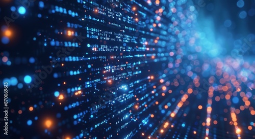 © olegganko, Fototapeta premium Abstract Digital Landscape With Blue and Orange Lights