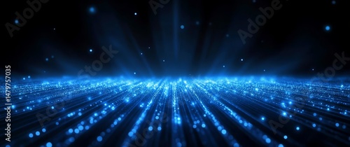 © meng, Obraz premium Abstract Digital Landscape with Blue Light Rays and Particles