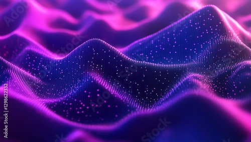 Obraz premium Abstract digital landscape with flowing waves of vibrant pink and purple...