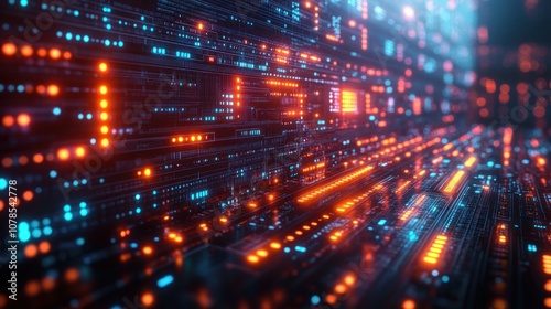 © Imam, Obraz premium Abstract digital landscape with glowing data streams and circuits.