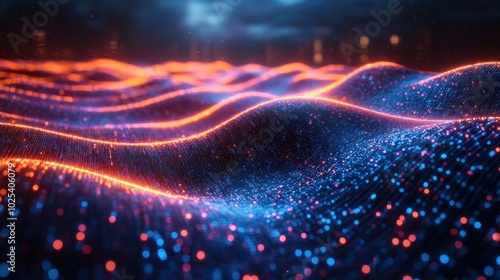 Obraz premium Abstract Digital Landscape with Glowing Lines