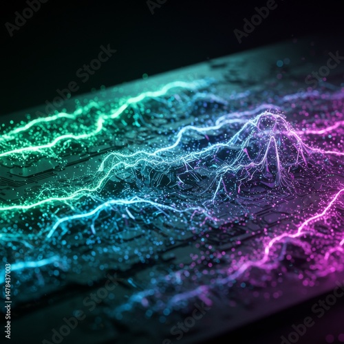 © DanadyaksaDen, Fototapeta premium Abstract Digital Landscape with Glowing Particles