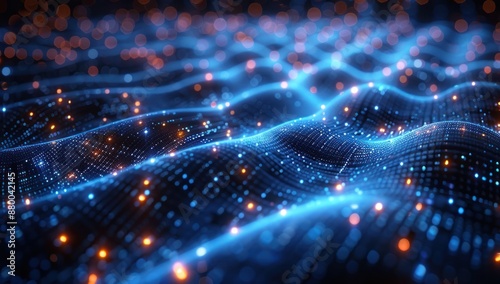 Fototapeta premium Abstract Digital Landscape with Glowing Particles