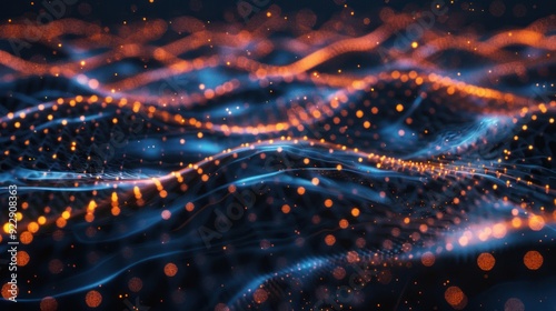 © bejo_, Obraz premium Abstract Digital Landscape with Glowing Particles