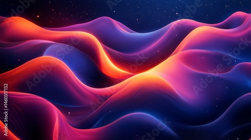 © lartestudio, Fototapeta premium Abstract digital landscape with vibrant color waves.