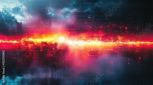 Fototapeta premium Abstract digital landscape with vibrant colors and a futuristic atmosphere.