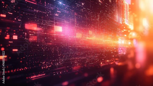 © Mario, Fototapeta premium Abstract digital landscape with vibrant light trails and patterns.