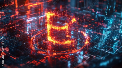 © Olena, Obraz premium Abstract Digital Letter E Futuristic digital illustration showing an abstract glowing 'E' in red on a complex circuit board background with blue light effects.