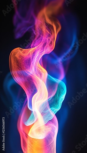 Obraz premium Abstract Digital Light Trails, Vibrant Neon Purple, Yellow, and Green Gradient, Ethereal Streams