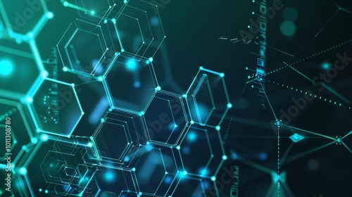 © Shutter2U, Obraz premium Abstract digital network background with glowing hexagonal structures.